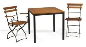 Beschreibung: Der Gartenstuhl Ljubljana mit Armlehne ist für den professionellen Einsatz auf Terrassen von Gastronomiebetrieben und Hotels konzipiert. Sein klappbares Metallgestell aus verzinktem Eisen, geschützt mit einer strapazierfähigen anthrazitfarbenen Beschichtung, bietet Stabilität, Korrosionsbeständigkeit und eine lange Lebensdauer. Die Sitzfläche und die Rückenlehne aus Holz (imprägnierte Akazie) bieten natürlichen Widerstand gegen Witterungseinflüsse und dauerhafte Haltbarkeit.